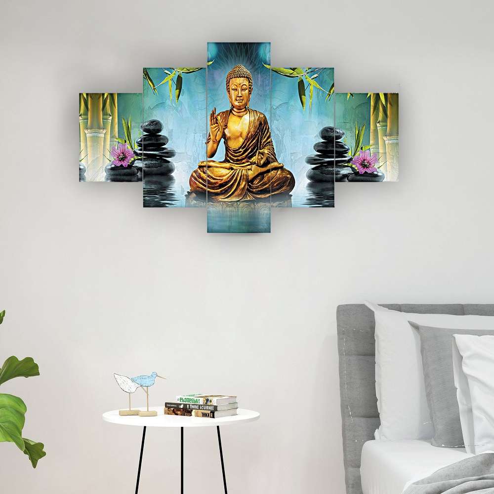 Buddha Set of Five 3D Framed Paintings for Wall Decoration – Ideal for Home, Living Room, and Bedroom (125 x 60 CM)